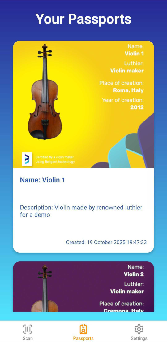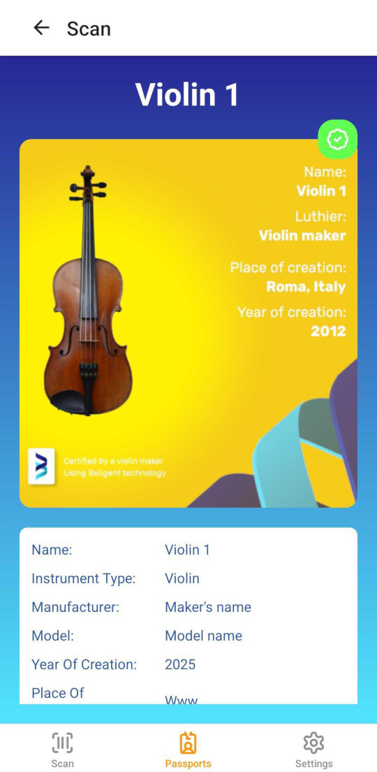 The Beligent Scanner app allows end-users to easily access the passport by simply scanning a QR code or NFC tag placed inside, on, or separate from your product. They immediately access the digital passport with all its functionalities and information.